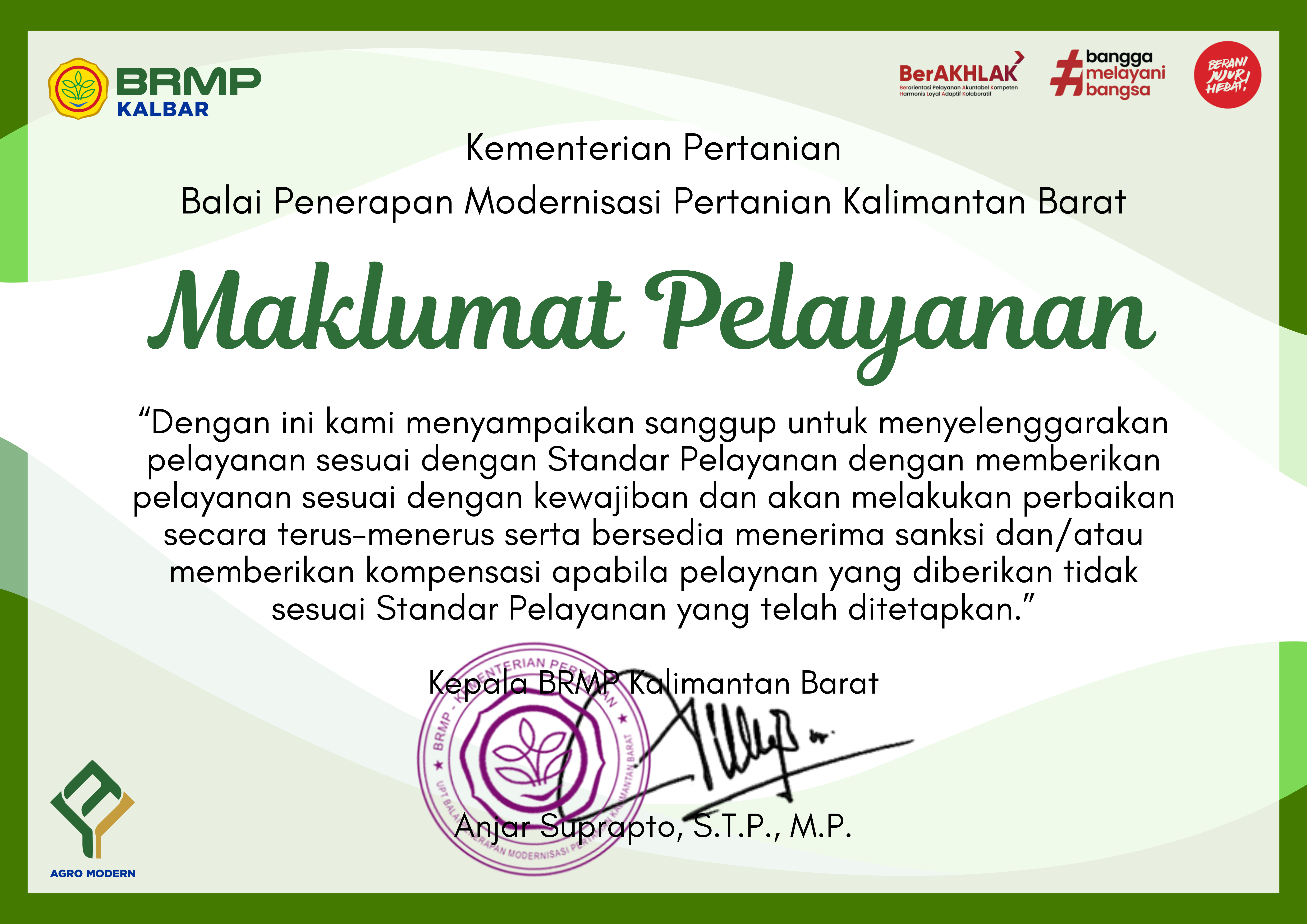 Sebagai badan publik, BRMP Kalimantan Barat berkomitmen menyelenggarakan pelayanan sesuai standar dan peraturan perundang-undangan.